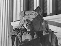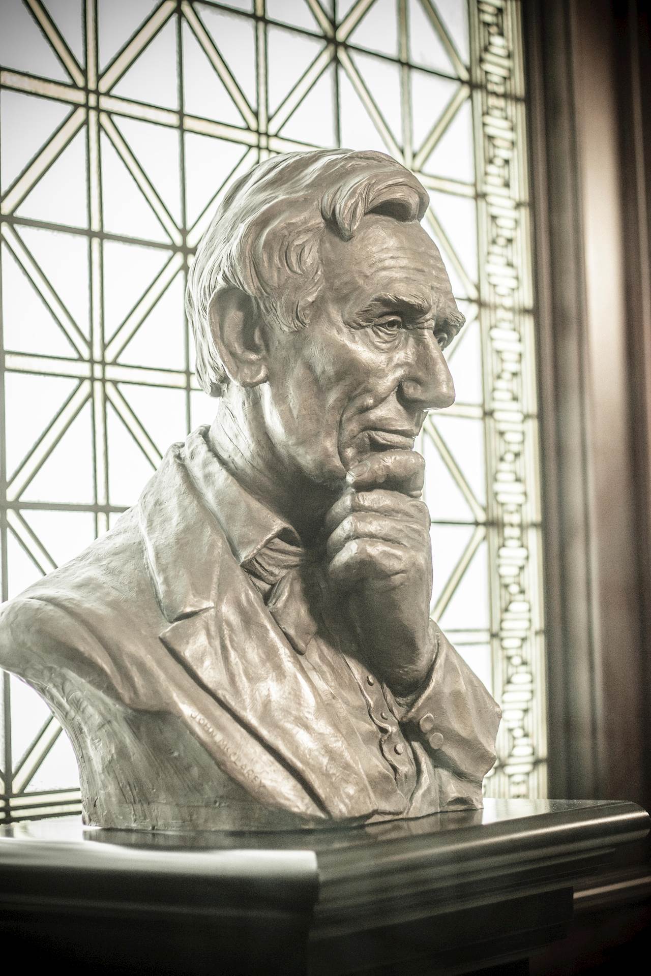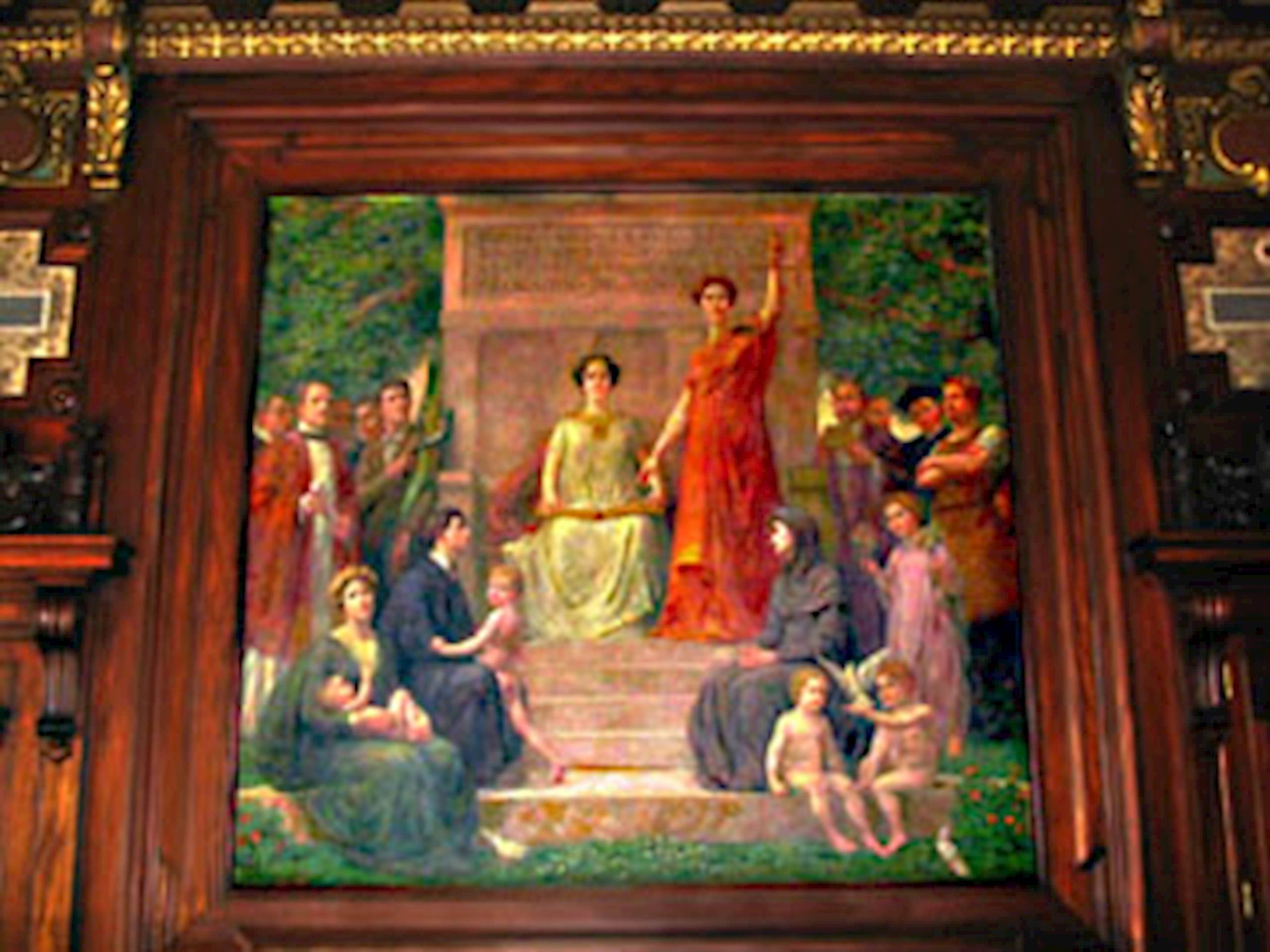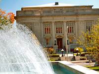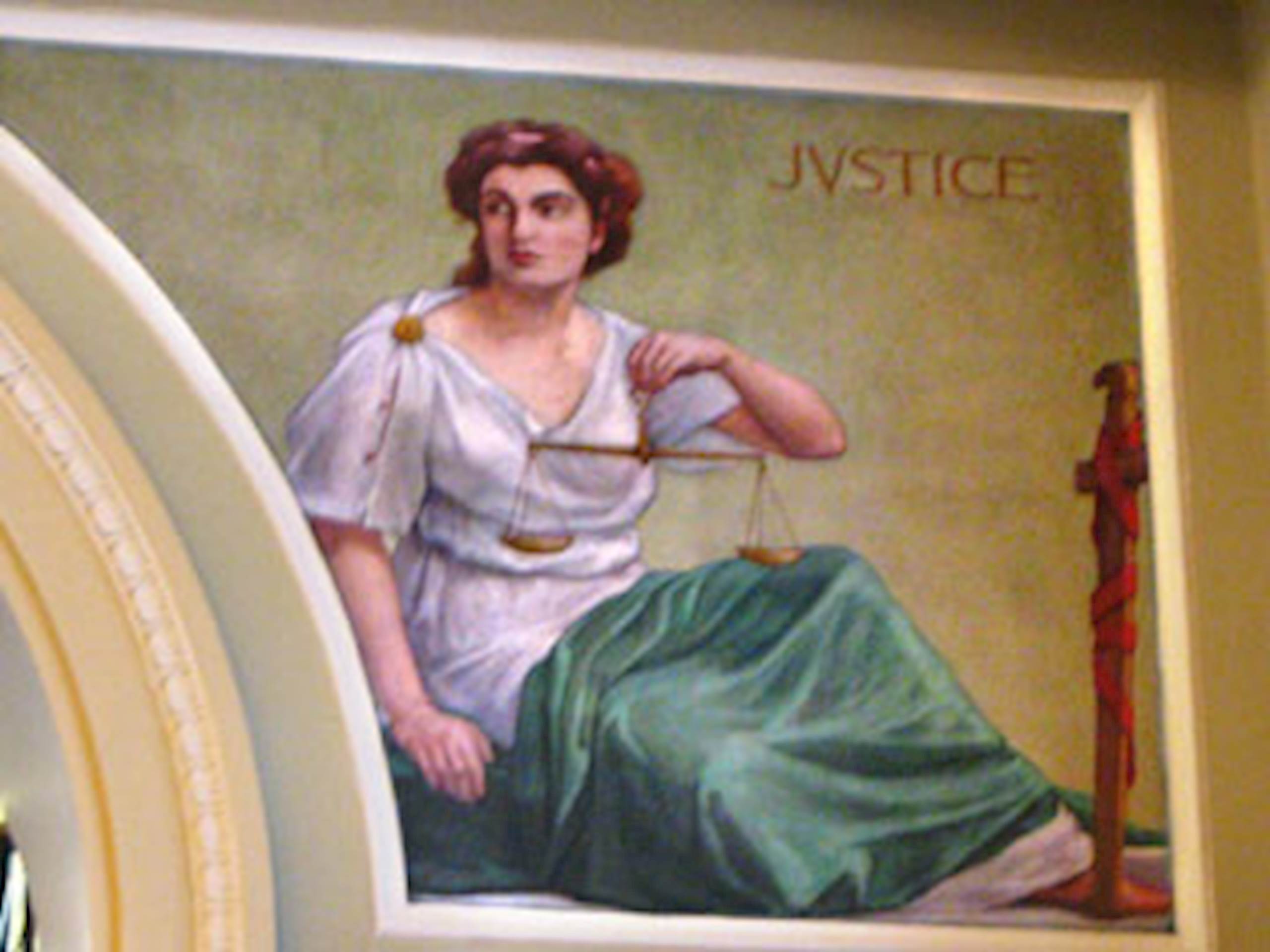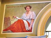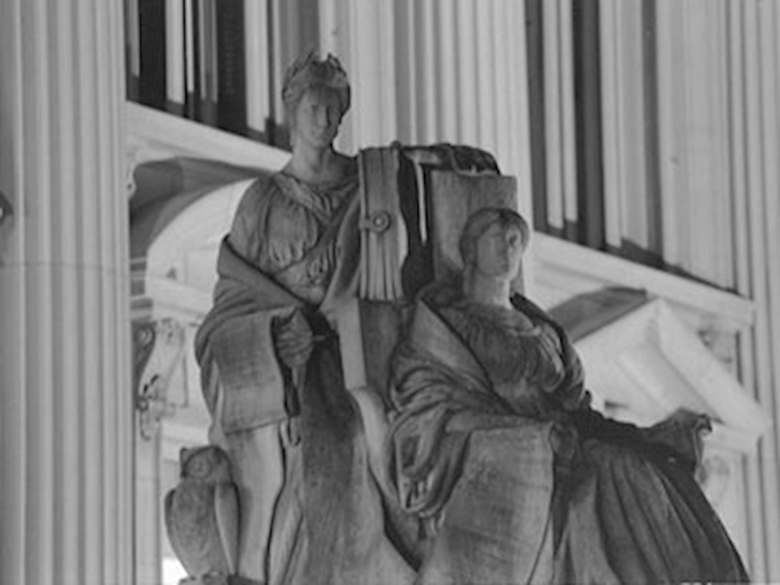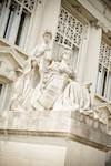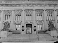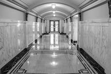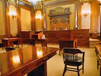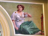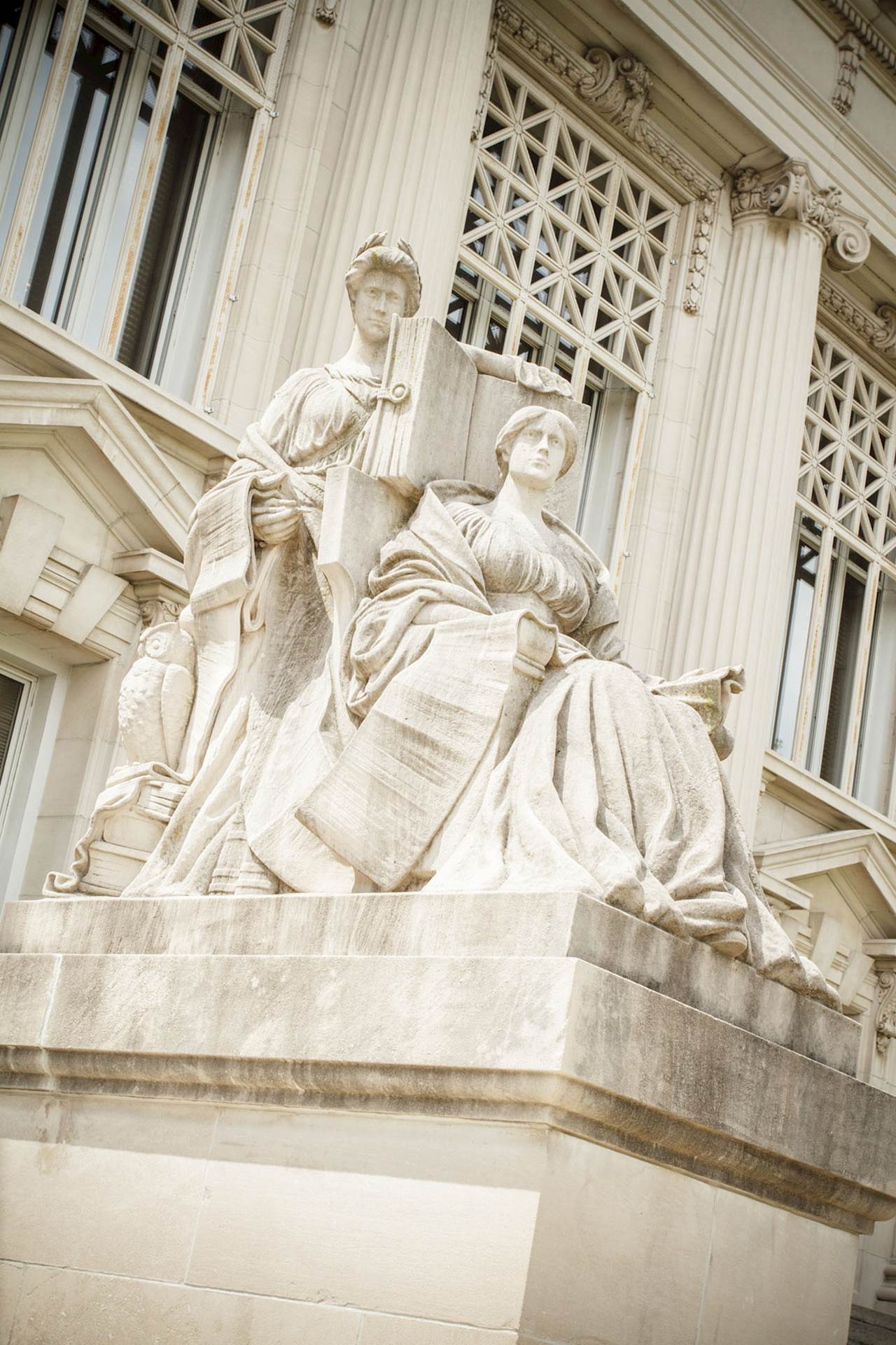 Images of the Illinois Supreme Court Building including: The exterior of the building, courtrooms, artwork, and the Supreme Court Library